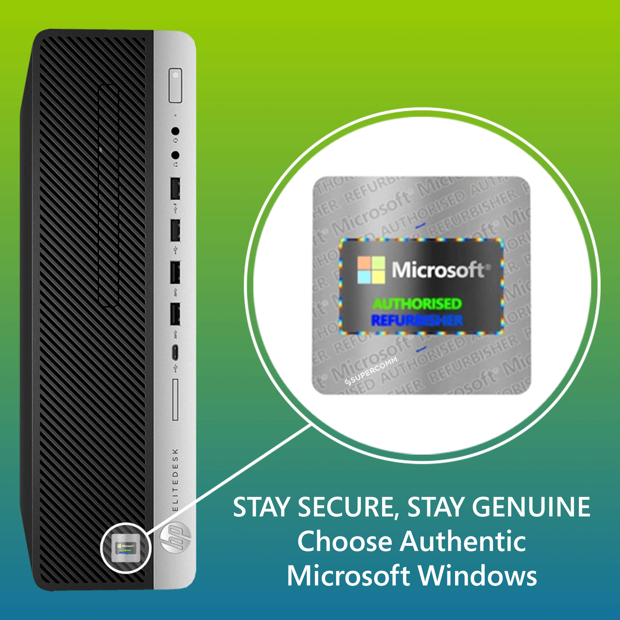 At Super Comm, we exclusively supply Microsoft Certified Refurbished Laptops and Desktops, each accompanied by a genuine Microsoft Certificate of Authenticity, ensuring trusted performance and reliability.