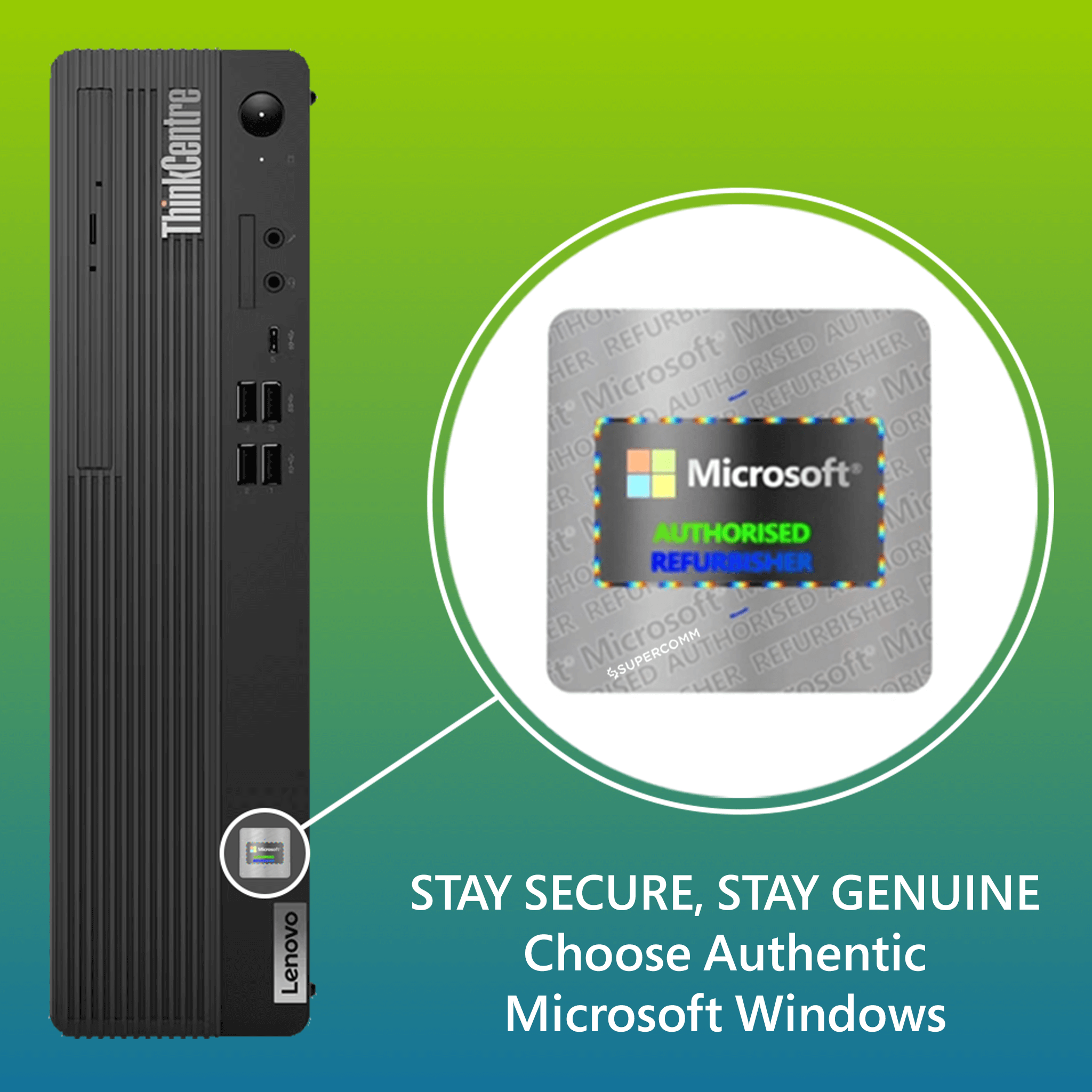 At Super Comm, we exclusively supply Microsoft Certified Refurbished Laptops and Desktops, each accompanied by a genuine Microsoft Certificate of Authenticity, ensuring trusted performance and reliability.